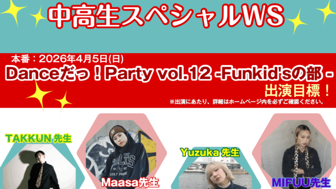 冬の中高生ワークショップ開催!! ファンティーンズメンバー、一挙集まれ!!2DAY開催★ 4月5日( […続きを見る]