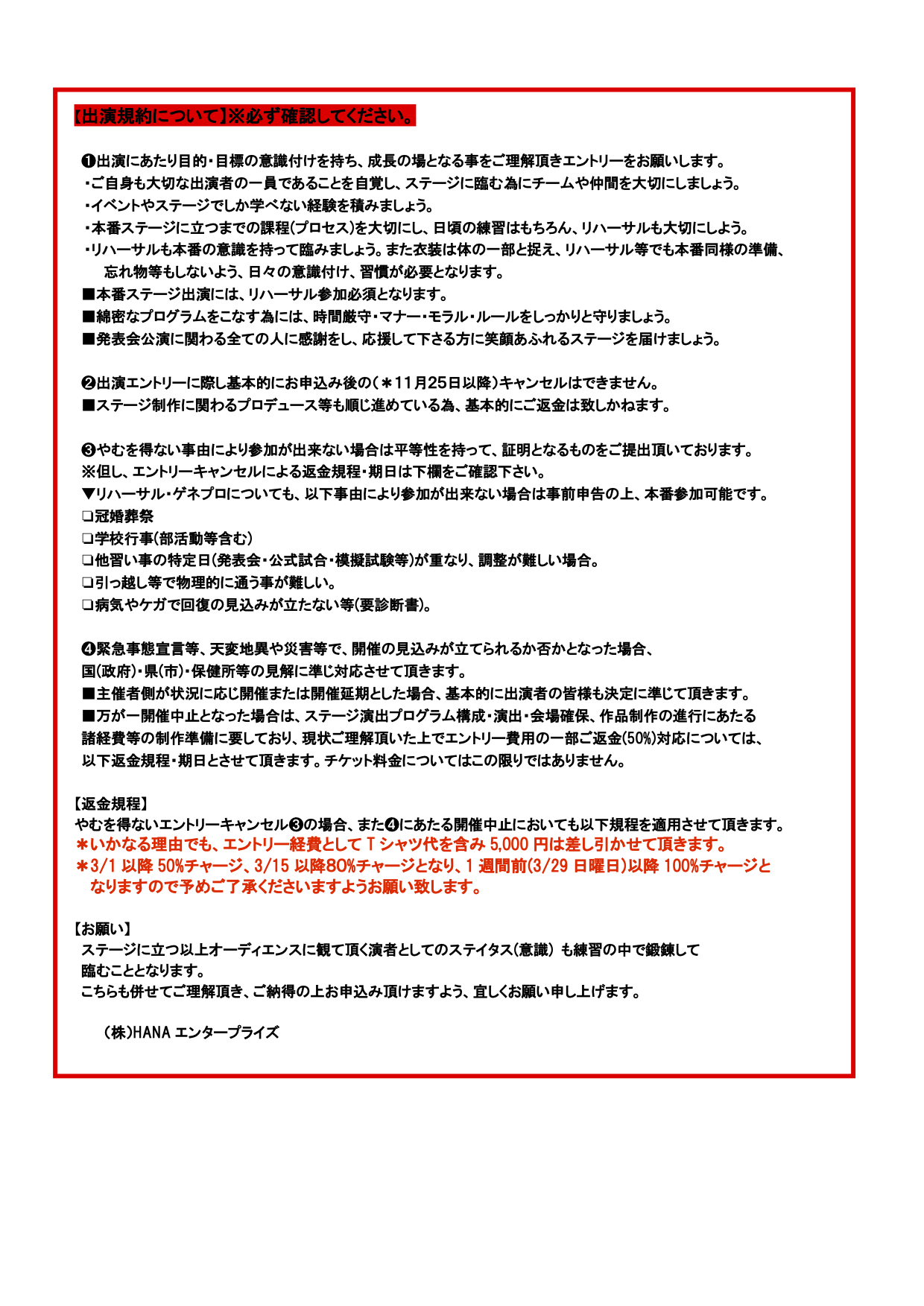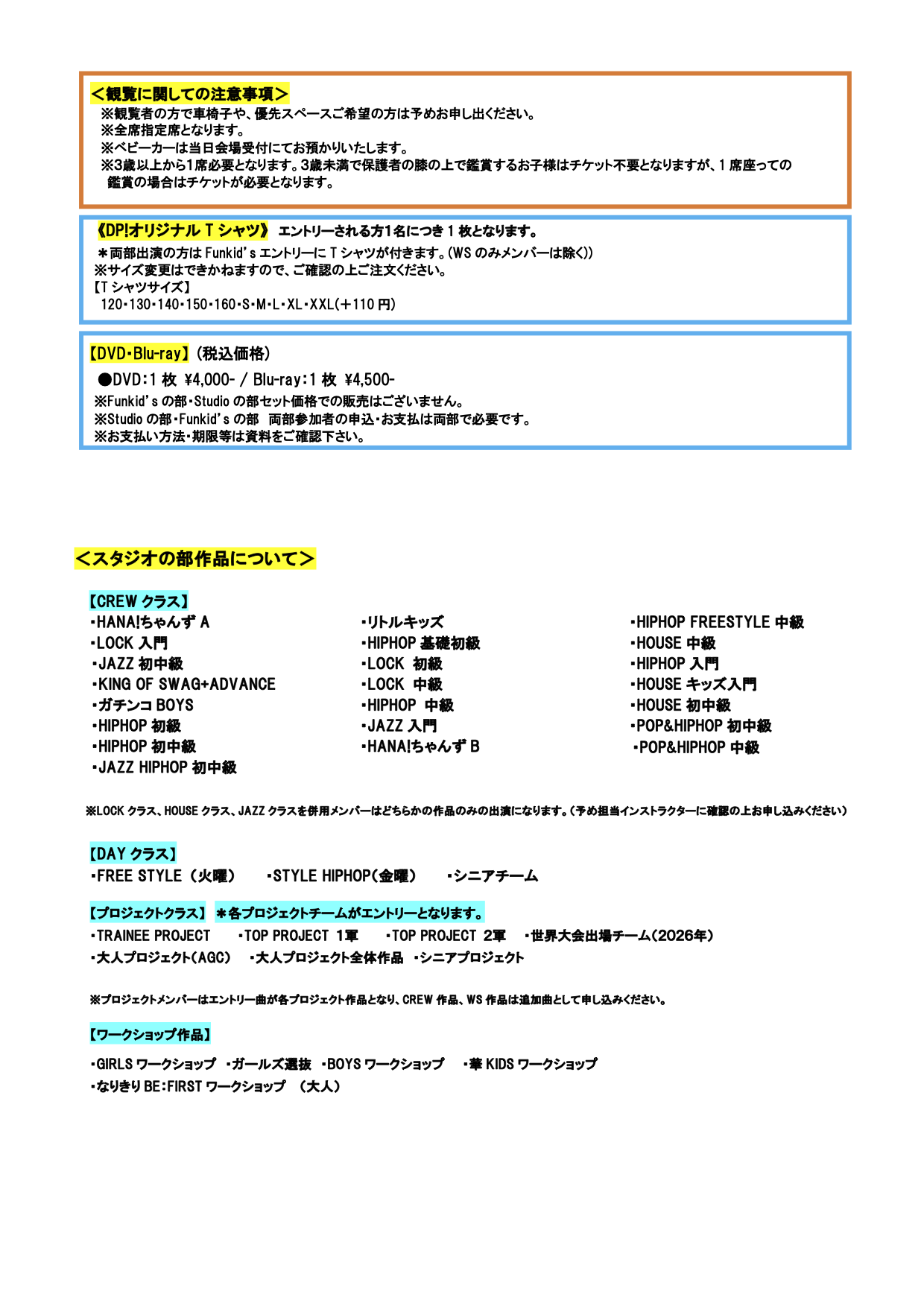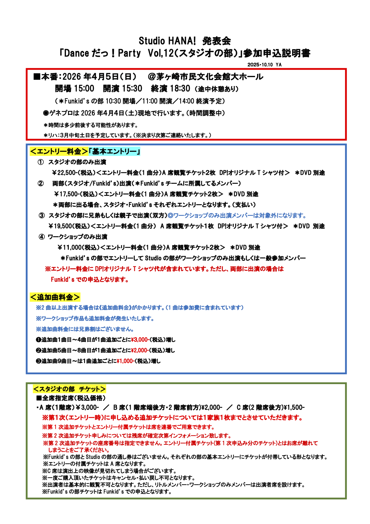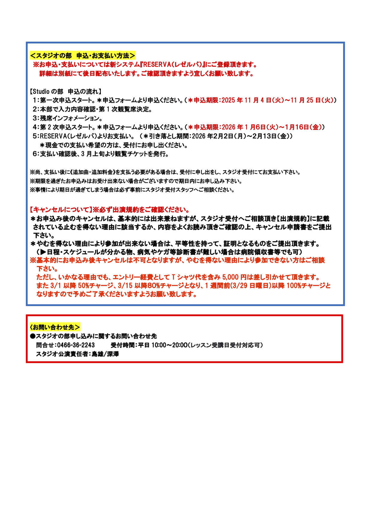 ご不明な点は、Studio HANA!受付にてお伺いください。