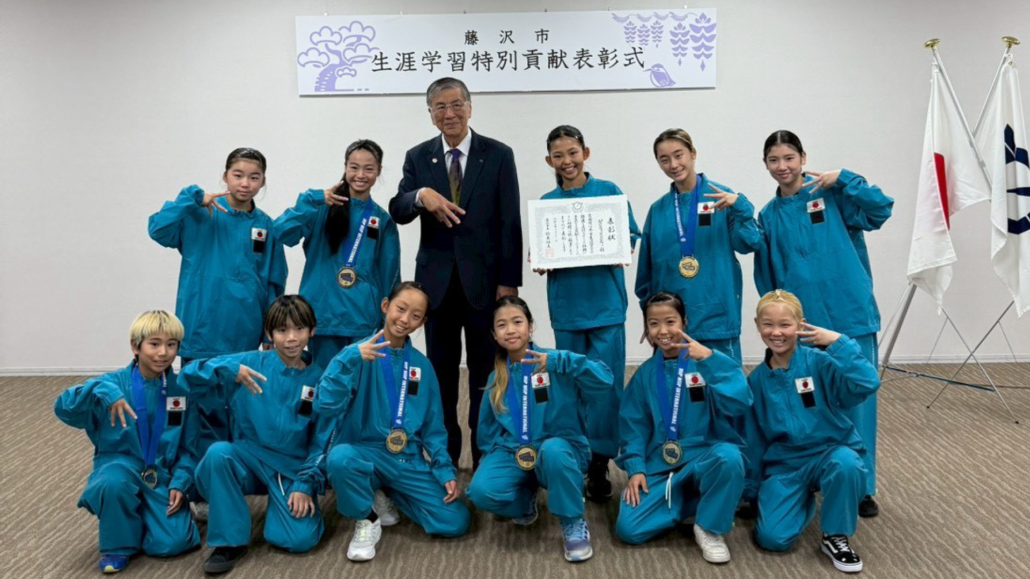 神奈川県藤沢市にて行われた 【藤沢市生涯学習特別貢献表彰式】にて、 2025年8月に出場した世界大会 【WORLD HIPHOP CHAMPIONSHIP 2025】 ジュニア部門での優勝と、功績が認められ「MONSOON!」が表彰していただきました。藤沢市在住メンバーのみならず、チームとして表彰して頂けて メンバー一同感謝しております。